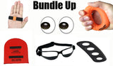 The Ball Hog Accessory Bundle Package helps players develop in three important areas. On the court and off the court. This package includes the OFF HAND Shooting Aid, Ball Hog Gloves Grip (Hand Strength), Dribble Glasses (Ball Handling).